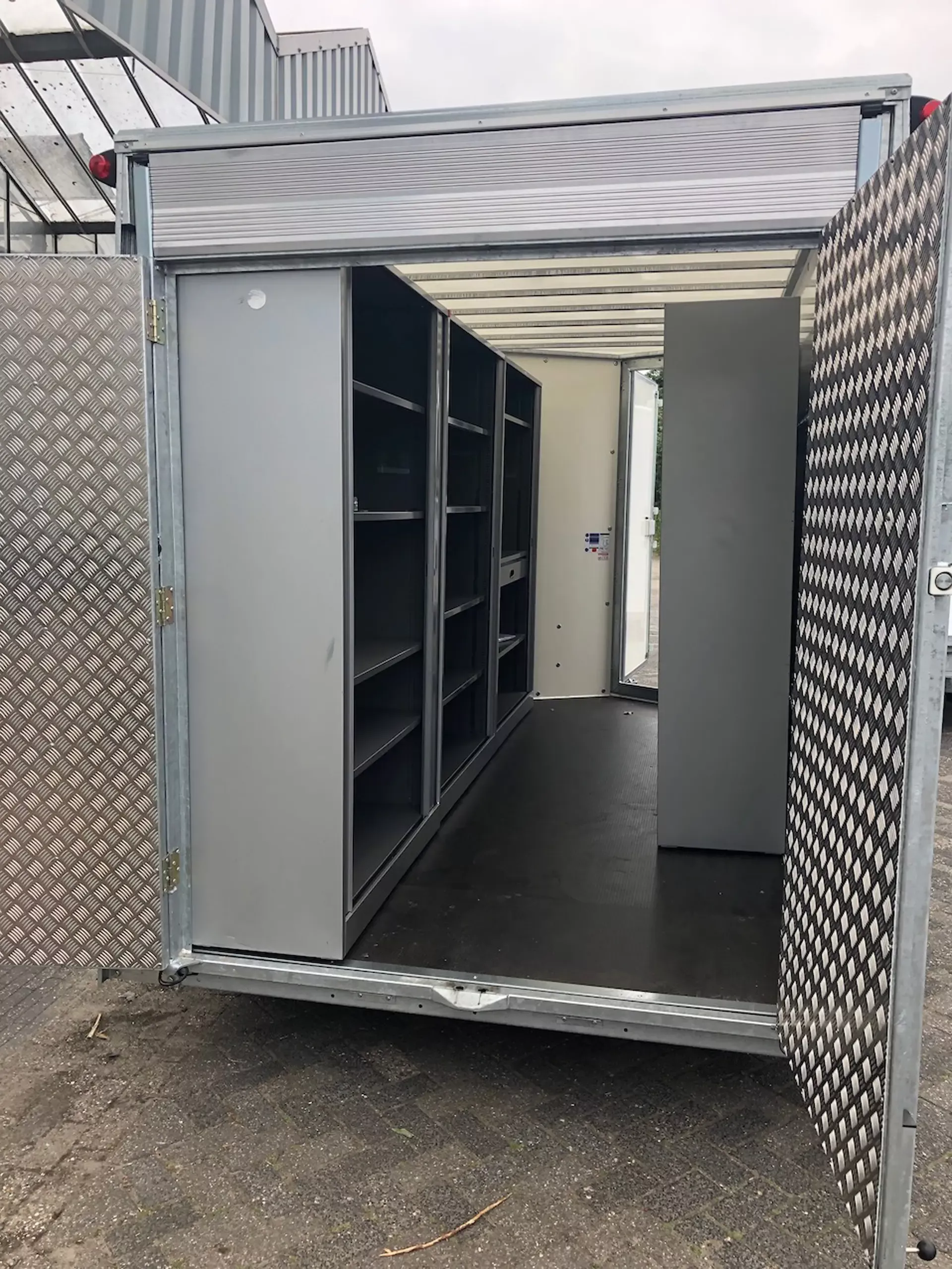 Achterzijde open met deuren voor snelle toegang en minder benodigde parkeerruimte.