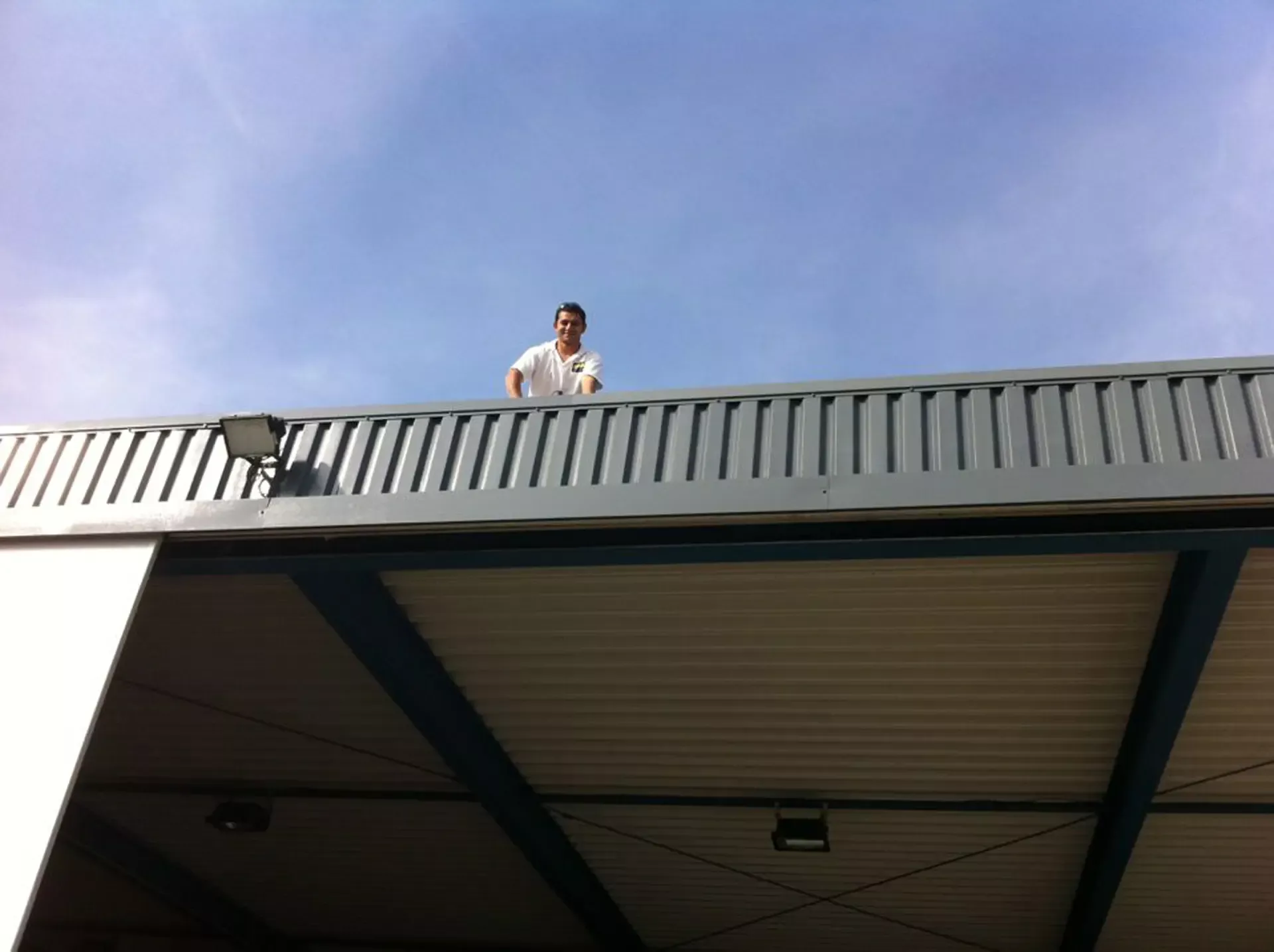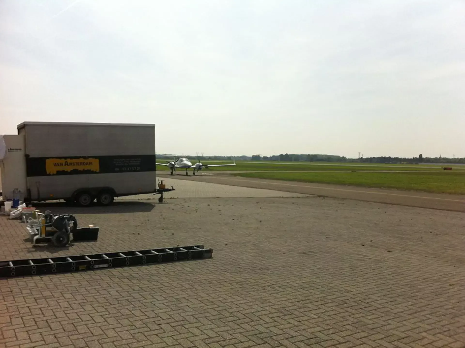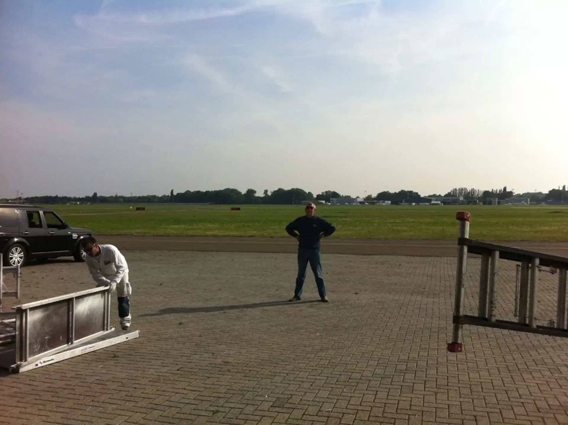 In België kregen we de bijzondere opdracht om de privéhangar van een verzamelaar van historische vliegtuigen te spuiten. De grootste uitdaging hierbij was het voorkomen van verfnevel op de onschatbare vliegtuigen. Met behulp van ons standaard afzuigsysteem hebben we rondom de steiger een vacuümunit gecreëerd, waardoor we veilig konden werken zonder risico op schade. De 40 meter lange deuren zijn vervolgens behandeld met een roestwerende verf, die garant staat voor minstens 10 jaar onderhoudsvrij gebruik.