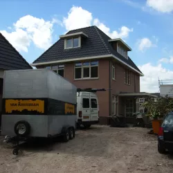 In Kortehoef is een volledig nieuwe wijk ontwikkeld, en het grootste huis hiervan hebben wij vanaf de bouw tot in de puntjes afgewerkt. Zowel binnen als buiten hebben we al het houtwerk in hoogglans geschilderd en de wanden en plafonds voorzien van spuitwerk met afneembare matte verf. Drie jaar later hebben we het gehele pand zorgvuldig geïnspecteerd en bijgewerkt. Na nog eens drie jaar hebben we alles opnieuw geschilderd om de kwaliteit en uitstraling te waarborgen.