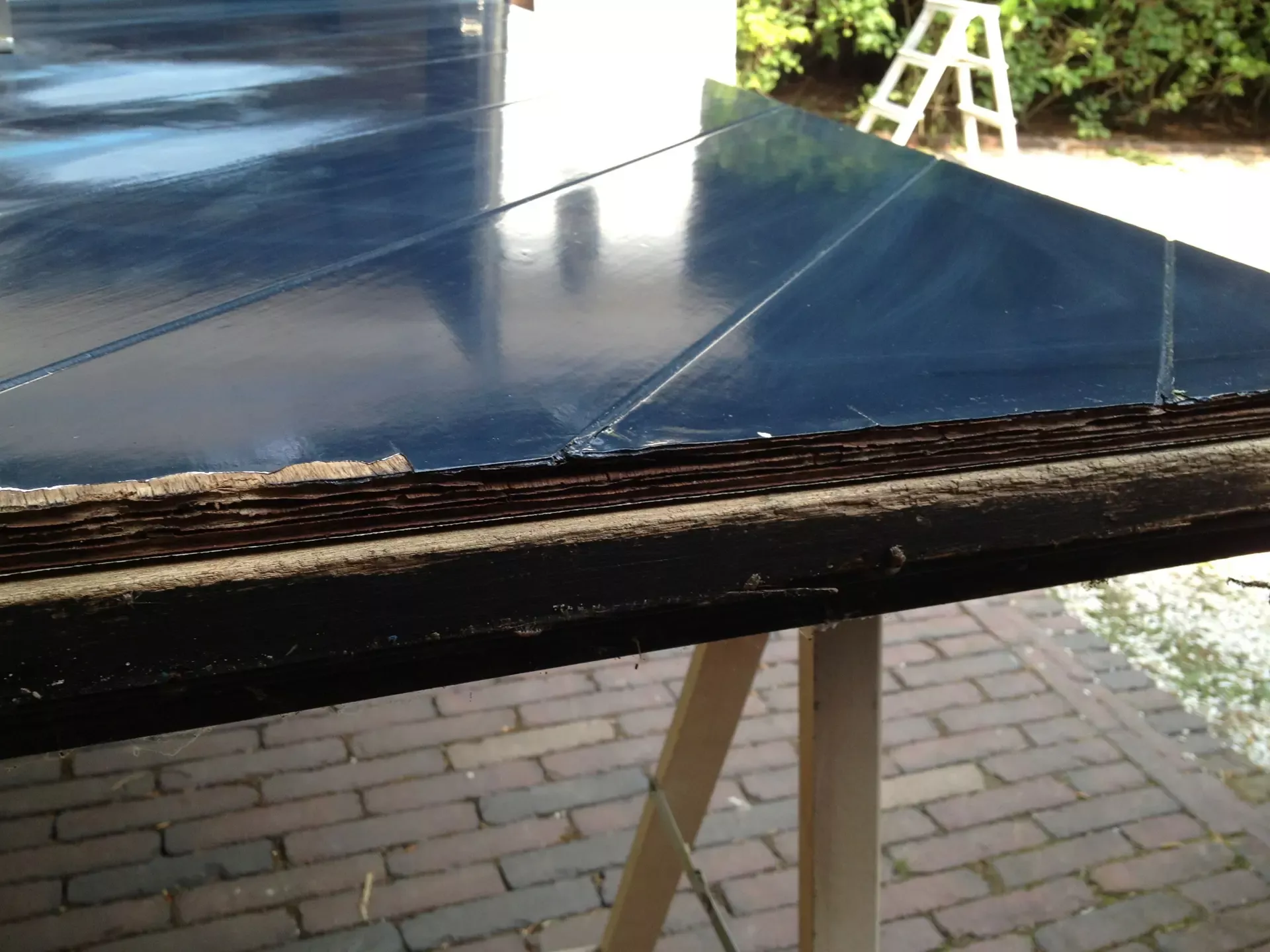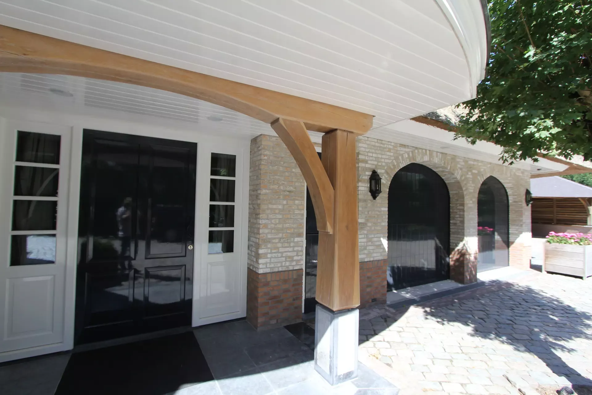 Voor de carport hebben we een tijdelijke spuitcabine ingericht om de luiken te spuiten, terwijl de rest van het houtwerk met de hand is geschilderd. Binnen hebben we alle oppervlakken gespoten voor een uniforme en strakke afwerking.