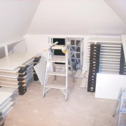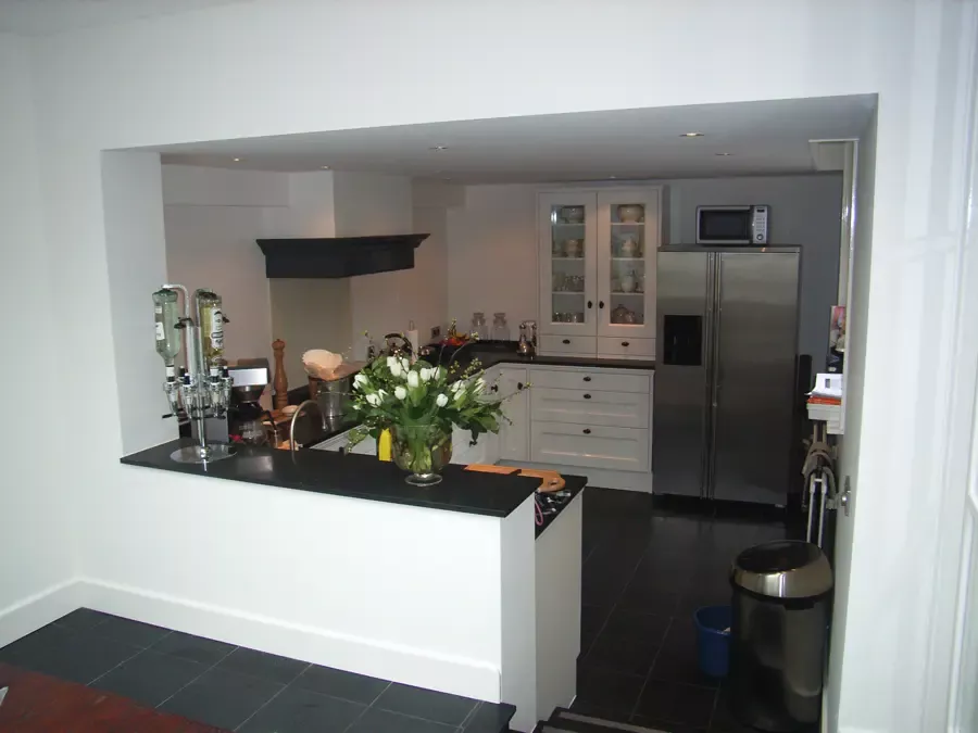 Binnen hebben we het houtwerk afgewerkt met hoogglansverf en de wanden voorzien van een afneembare matte buitenverf, wat zorgt voor een strakke en duurzame afwerking.