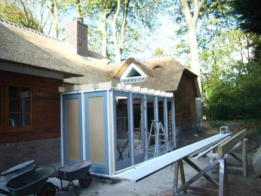 In Blaricum is van dit oude huis een moderne villa gemaakt, en Van Amsterdam heeft de volledige afwerking verzorgd. Aan de buitenzijde hebben we het oude lakwerk verwijderd en vervangen door een nieuw hoogglans verfsysteem. De rabbatdelen zijn behandeld met een vochtregulerend halfglans verfsysteem voor extra bescherming.